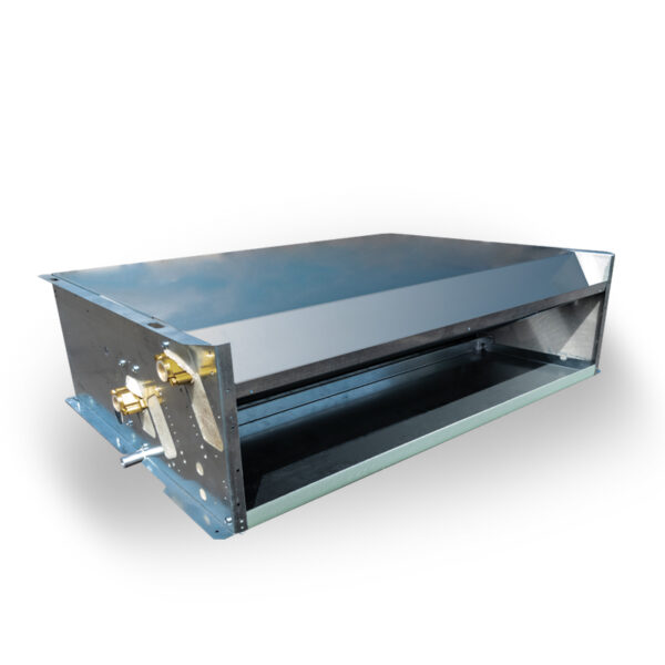 Серія канальних фанкойлів MF, призначені для установки в підвісну зону стел, постачається без змішувальної камери – адаптера. Це рішення полегшує роботу з’єднань із повітророзподільними каналами, уникає операцій з’єднання (камера / фанкойл) на місці та дозволяє значно зменшити вагу.